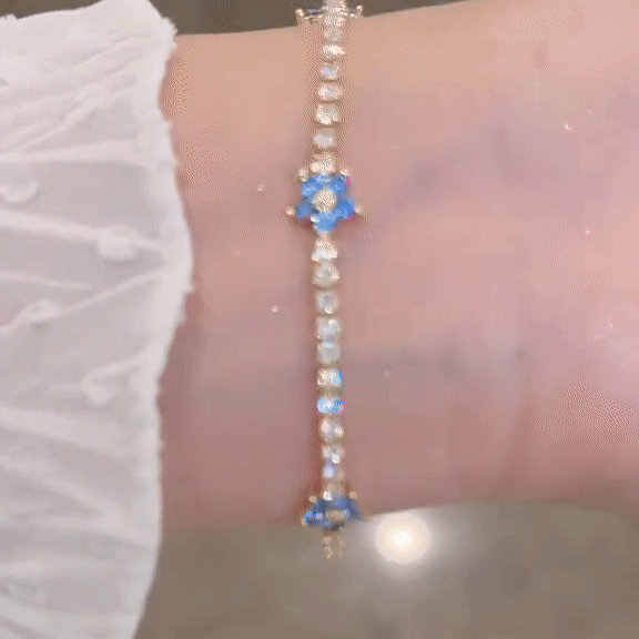 Dette elegante tennisarmbåndet kombinerer den tidløse gnisten av AAA+ kubisk zirkonia, slipt for å reflektere lys som ekte diamanter, med sjarmerende blå blomsterdetaljer som gir et mykt og feminint preg.