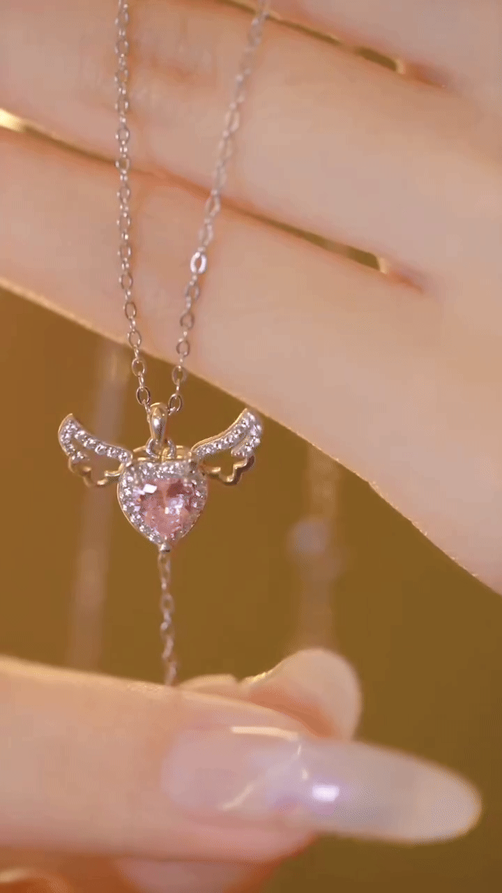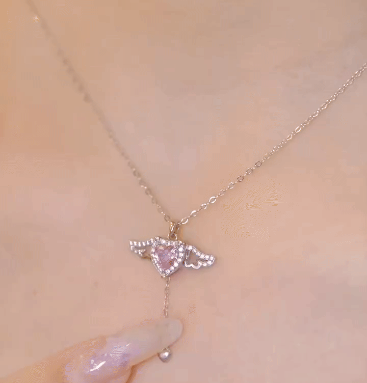 Discover the playful magic of the Cupid’s Heart Necklace: when you gently pull the heart charm at the bottom, the wings gracefully flutter up and down, bringing the piece to life with every movement.