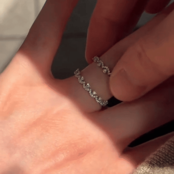 Dette unike smykket er skulpturert i rent 925 sterlingsølv, og har to perfekt sammenlåste bånd, designet for å bevege seg som én, men likevel skinne uavhengig av hverandre. Hver kurve er utsmykket med briljantslipte AAA+ kubiske zirkoniaer, valgt for sin diamantlignende ild og feilfrie klarhet.